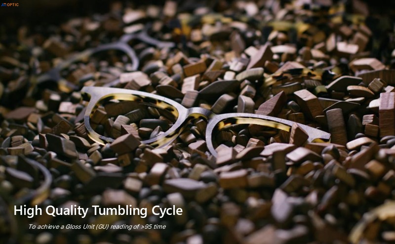 The Solution: Achieving a liquid-like gloss requires time. At JM Optical, our custom acetate frames undergo a rigorous 96-hour tumbling cycle using German wood pegs and organic polishing wax, followed by manual wheel-buffing. This achieves a Gloss Unit (GU) reading of >95.