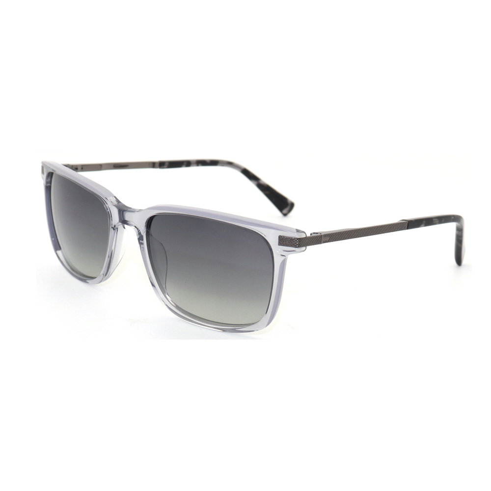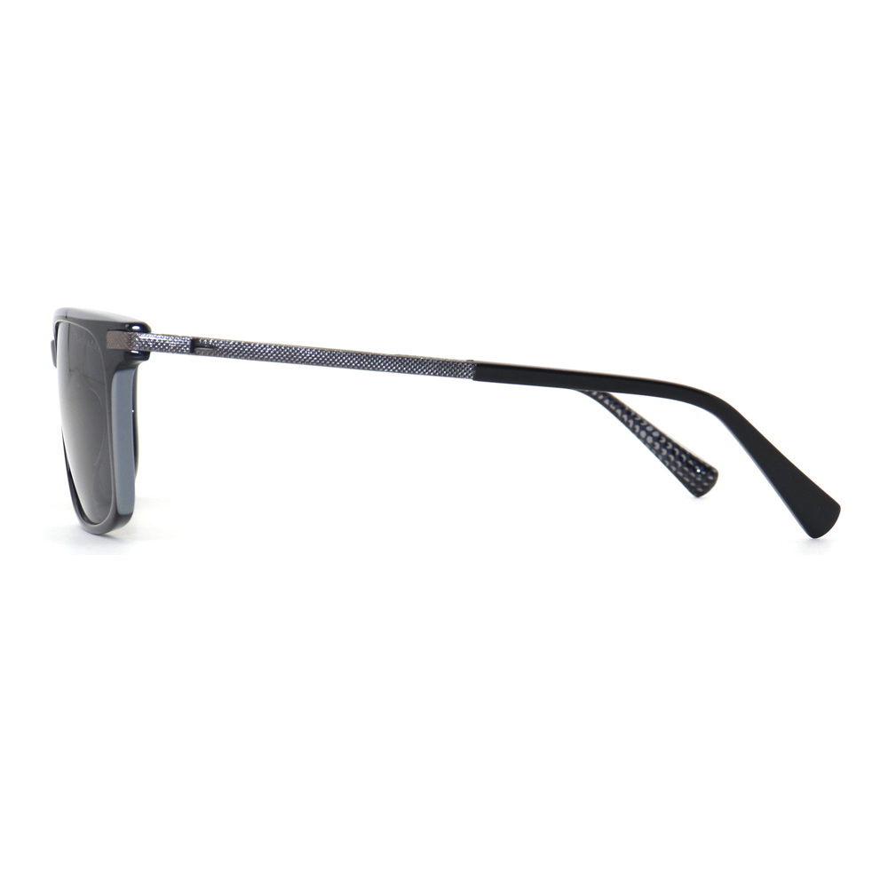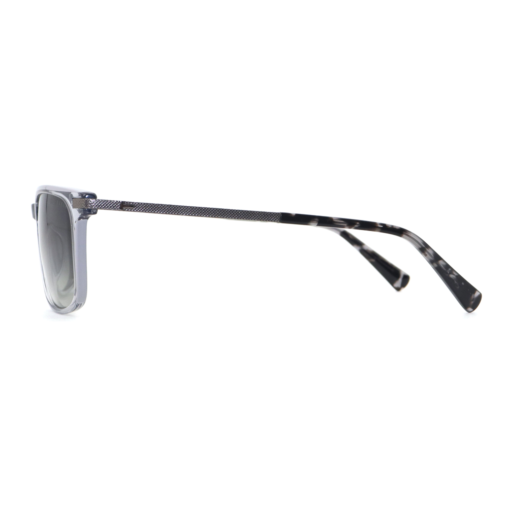 These sunglasses boast square frames constructed from acetate and metal, showcasing a stylish paneled design. The metal parts of the temples feature intricate patterns. They provide superior UV protection, combining fashion, durability, and comfort. Available in multiple colors, they effortlessly elevate any outfit with their sleek and sophisticated look, ideal for daily wear.