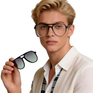In the dynamic world of optical fashion, our Aviator Double-Bridge Acetate Click-On Eyewear stands as a testament to the seamless fusion of iconic design, artisanal craftsmanship, and innovative versatility. Crafted for the modern consumer who values both aesthetic allure and practical convenience, this collection reimagines the classic aviator silhouette, offering a transformative accessory that effortlessly transitions between clear vision correction and sun protection with a single, intuitive click. Designed to elevate everyday style while addressing the core needs of eyeglass wearers, this line is poised to become a staple in the portfolios of discerning consumers and forward-thinking retail partners alike.