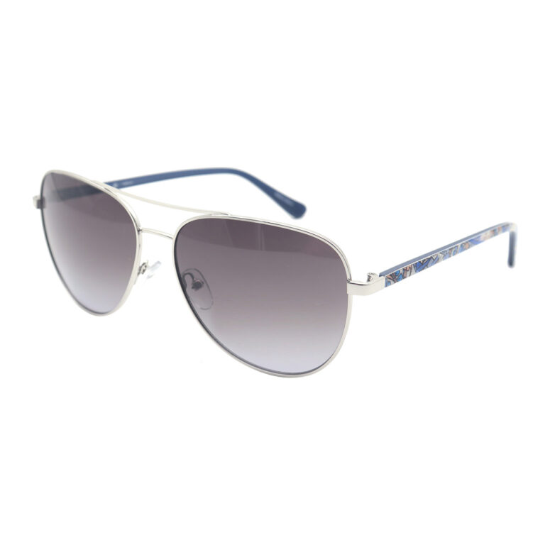 This metal pilot sunglasses, with floral-print temples and gradient lenses, blends classic aviation style, UV protection, and artistic flair for a stylish, wearable choice.